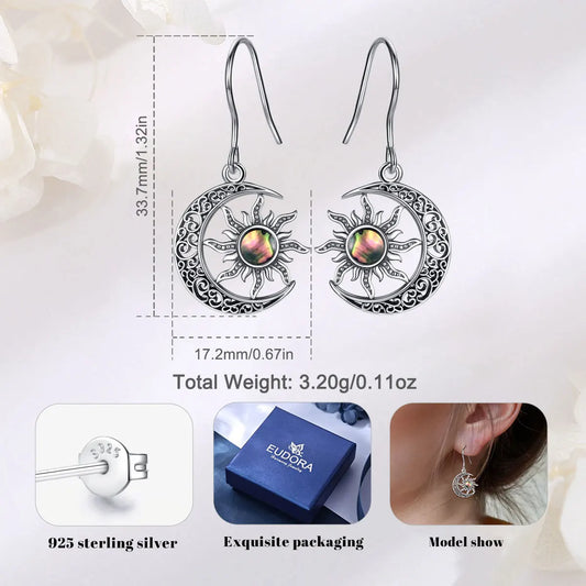 Nap és hold szimbólumokkal díszített ezüst fülbevaló