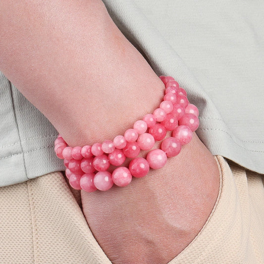 Rózsaszín Kálcedon Gyöngy rugalmas karkötő természetes kristályokból yogához, meditációhoz