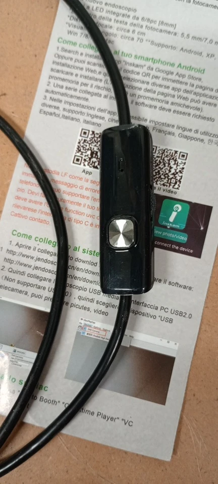 So when I first tried it out I thought it was broken. All I had was a screen with green lines as you can see in the picture. Instructions tell you to download an app called inskam. The app totally sucked. Ended up downloading a better rated endoscope app from the Google Play store and had much better results. My phone is a Motorola Moto G Stylus if anyone is curious as to what phone I was using. It has good picture quality and a nice selection of accessories. The camera head has adjustable lights that can be controlled remotely and will snap screen shots with the press of the silver button. Has a mic to record sound. Might be handy if you are recording video for social media or for trouble shooting. The mirror threads on so it won't fall off easily. Has a USB A to C adapter for connecting with a laptop or tablet. Good economical tool for testing.