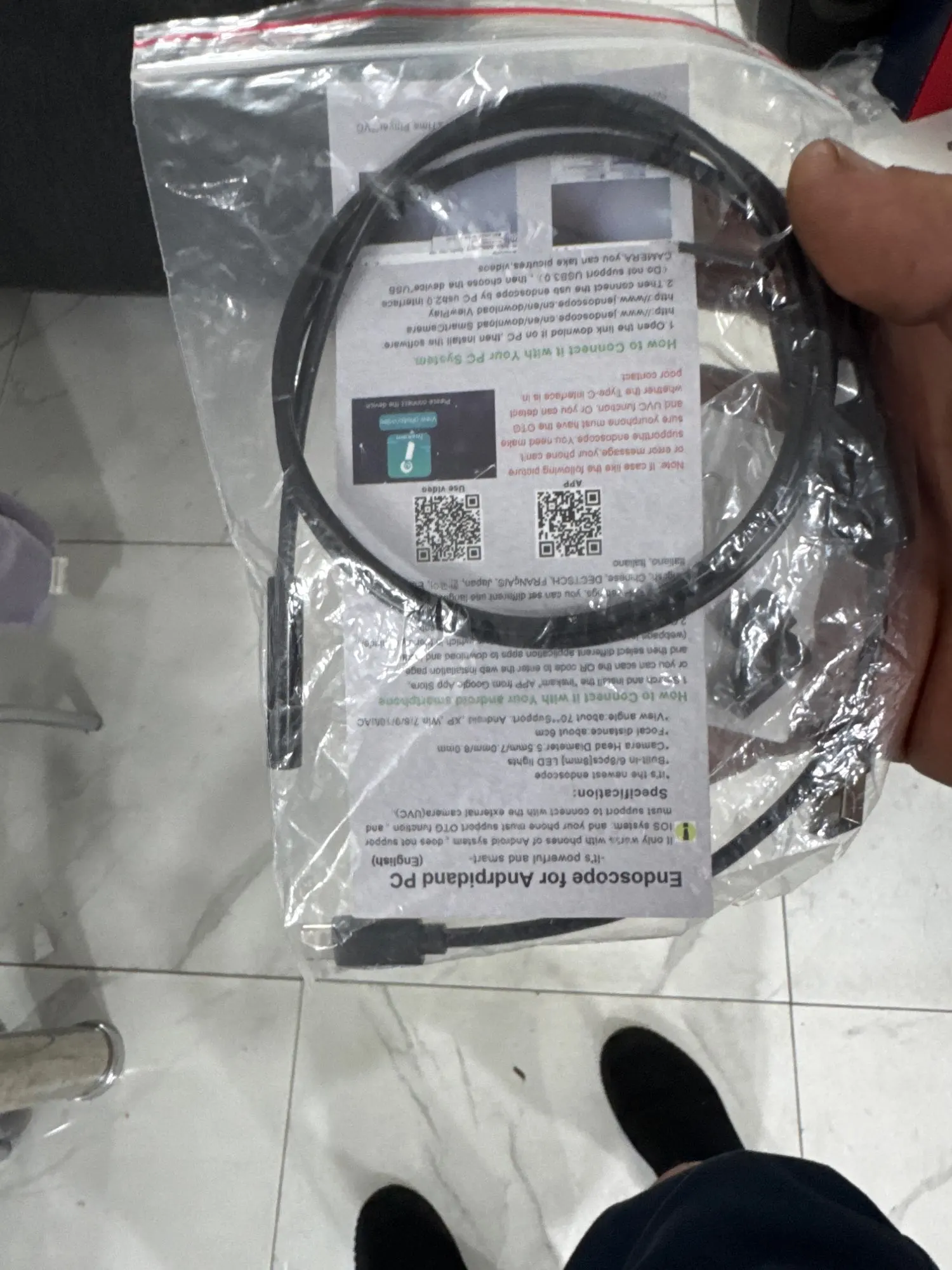 -1- Scan the QR code on the Manual to install APP, or download link to install APP, then an icon appears on mobile desktop, click on the icon, the product is available to use. It's very easy to operate this android endoscope, just download an APP and inserted the endoscope in your device, the APP will automatic recognition it , then start to use ! (Please make sure your phone has OTG function and supports external camera.)