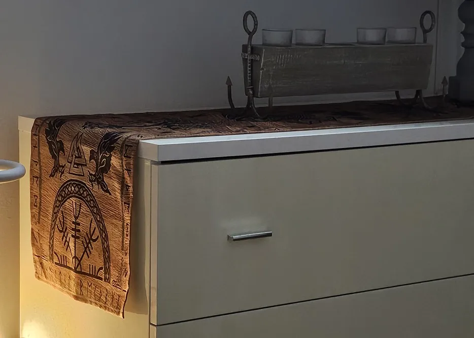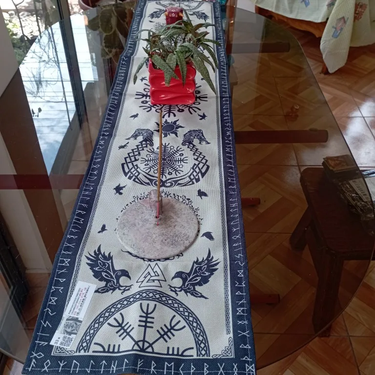 Ez a terítő nem csupán egy dekoratív darab, hanem egy szellemi védelmet nyújtó eszköz is. Ideális választás mindazok számára, akik szeretnék maguk körül tudni a viking mitológia és szimbólumok erejét, miközben a mindennapi étkezéseiket egy spirituálisan gazdag környezetben élvezik. |