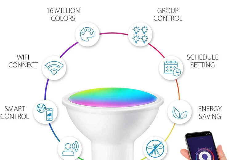 - A burkolat anyaga PA új anyag, amely jó hőelvezetési teljesítménnyel rendelkezik, biztonságos és megbízható, ideális okos otthoni világításhoz.