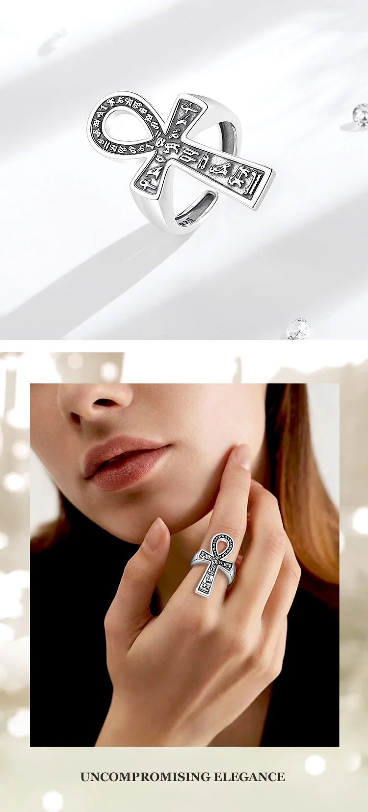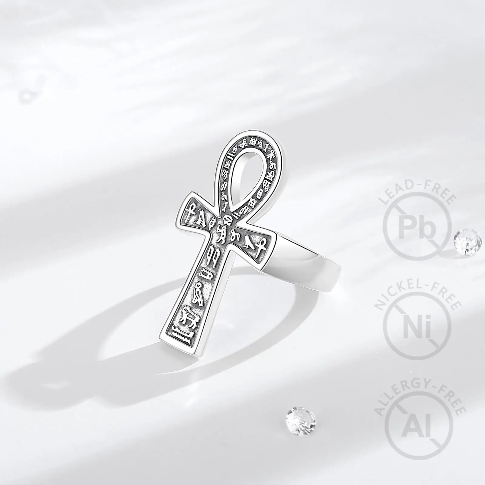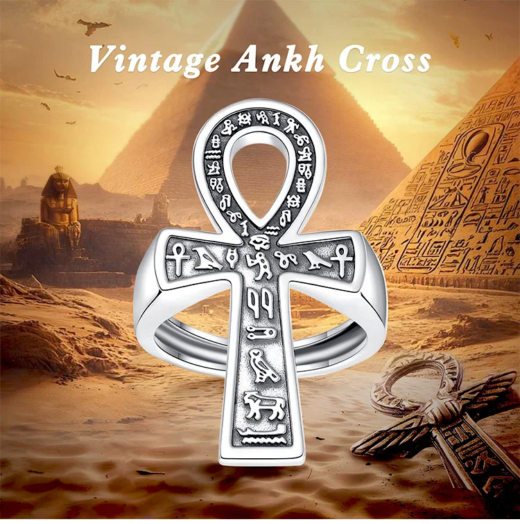 Hierogrifákkal díszített Ankh kereszt formájú állítható ezüst gyűrű