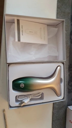 Super face massager! The battery holds for a long time, adjust the vibration level, at the highest level it works hard, EMS also works well, it has a cool ergonomic shape, it is comfortable to hold in the hand, I have been using for 2 months and I am very satisfied, I bought a second one for my mom.